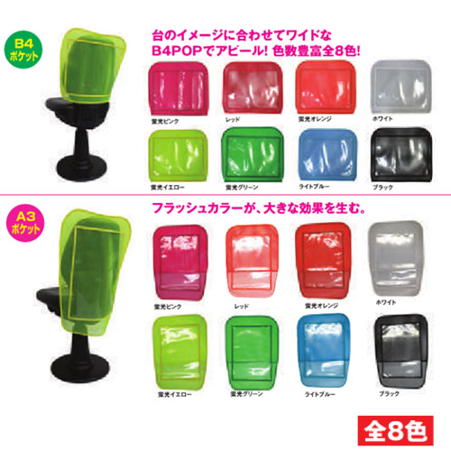 ベーシックチェアカバー BI052 ホールで便利な収納グッズ。 目をひくチェアポップでホールの熱気をさらに高めます! ポケットサイズ違いにご注意ください 用紙の挿入方向もお選びいただけます B4ポケット W430×H380mm A3ポケット W455×H615mm 全8色 ログインして購入してください。